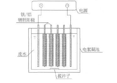 可溶性陽(yáng)極例如鐵、鋁等陽(yáng)極,在電源作用下,陽(yáng)極失去電子后,形成金屬陽(yáng)離子Fe2+、Al3+,與溶液中的OH-成金屬氫氧化物膠體絮凝劑,吸附能力極強(qiáng),將廢水中的污染物質(zhì)吸附共沉而去除。