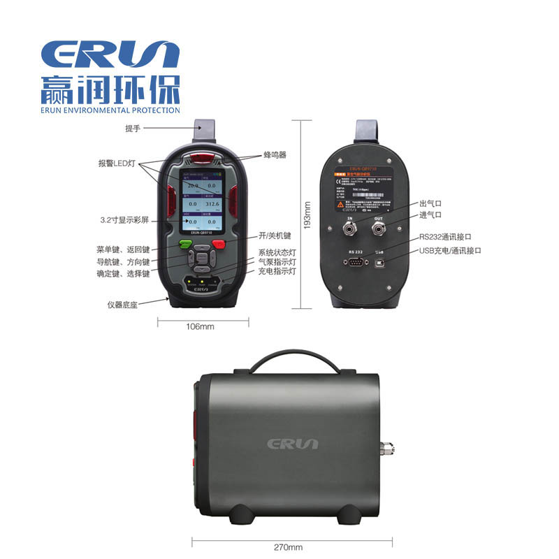 便攜式復合型多參數氣體分析儀ERUN-QB9610(內置泵吸式)