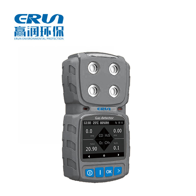 贏潤環保研發、生產的手持式泵吸型四合一多參數氣體報警儀ERUN-PG71S4能同時檢測1-4種可燃有毒氣體,可同時檢測氧氣、甲烷、硫化氫、一氧化碳或其他可燃有毒氣體,也可以配備溫度、濕度測量,檢測氣體種類超過500余種。