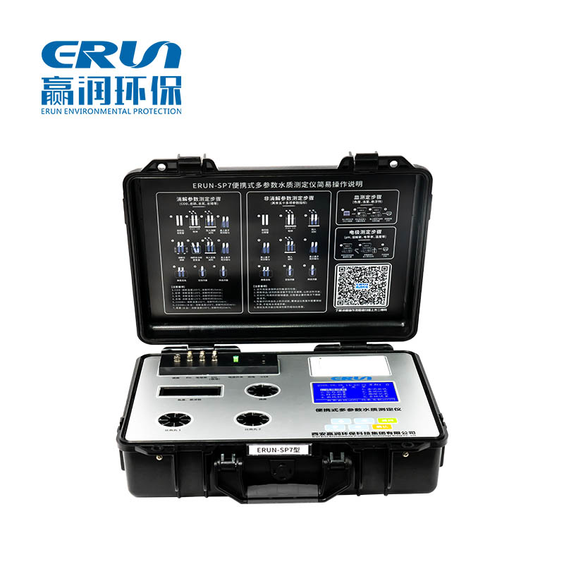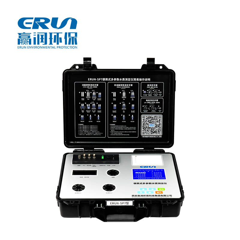 贏潤環保研發、生產的便攜式多參數COD、氨氮、總磷、總氮水質測定儀ERUN-SP-840A采用冷光源、窄帶干涉光學系統,光學性能穩定,具有PID自動控溫、計時等功能,操作簡便、省時,USB端口可連電腦讀取或快速打印數據。
