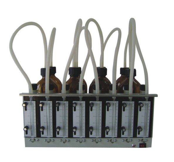 贏潤環保研發生產的ERUN-BY-2型直讀BOD5測定儀,把水樣以及二氧化碳吸收劑(NaOH)放入培養瓶內并密封,置于生化培養箱內,當被測樣品在20±1℃條件下恒溫進行五日培養后,有機物轉變成氮、碳和硫的氧化物,并產生二氧化碳氣體被氫氧化鈉吸收,而培養瓶內上部空間的氧氣不斷地供給水樣中微生物的需氧量,培養瓶內產生了壓力差,通過檢測玻璃管中汞的高度, 即可計算出水樣在規定測定期間內的BOD值。